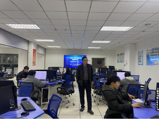 2023年11月18日上午,信誉最好的十大体育平台在BIM技术中心组织开展了“1+X”建筑工程识图(建筑设计类中级)职业技能等级证书考核。此次有10名员工参加考核。信誉最好的十大体育平台党总支书记、经理谢延友巡查考核现场。