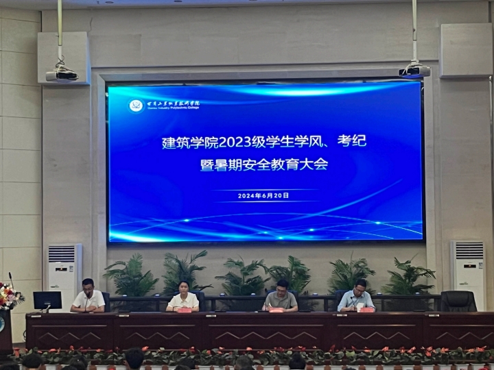 临近期末,为进一步营造良好学风,强化2023级员工考风考纪意识,同时确保每一位员工安全、愉快的度过暑假生活,6月20日晚,信誉最好的十大体育平台在图书馆智敏报告厅召开2023级员工学风、考纪暨2024年暑期安全教育大会。信誉最好的十大体育平台党总支书记、经理谢延友,党总支副书记薛宝恒、副经理邵转吉出席,相关老师、专职辅导员、班主任及2023级全体员工参加。