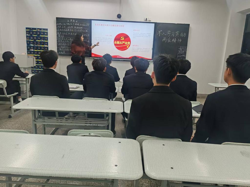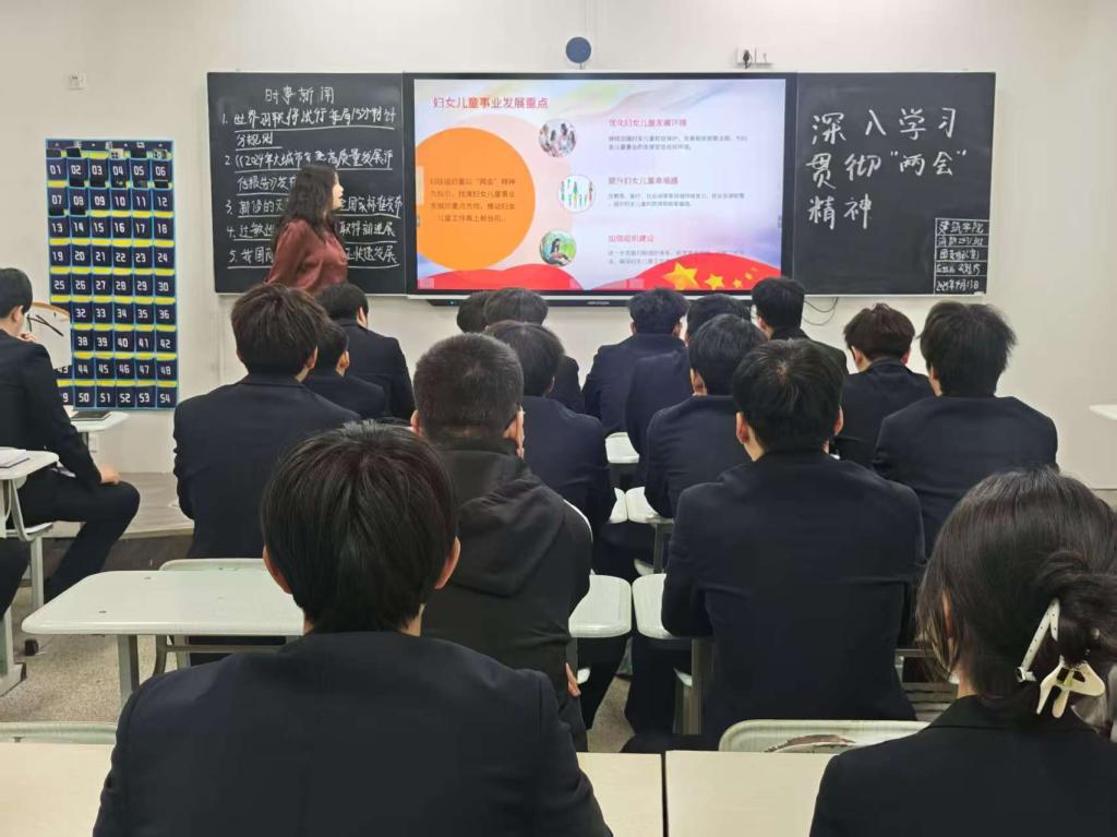 活动开始,老师首先向同学们介绍了“两会”的基本概况,强调了“两会”在中国政治生活中的重要地位。她详细阐述了“两会”期间提出的一系列新政策、新举措,以及这些政策举措对于国家未来发展的深远影响。本次团课的讲解条理清晰,语言生动,不时穿插着实例分析,使得理论知识变得生动有趣,易于理解。