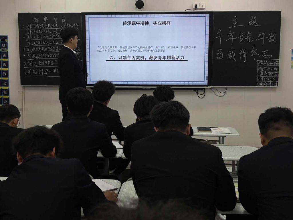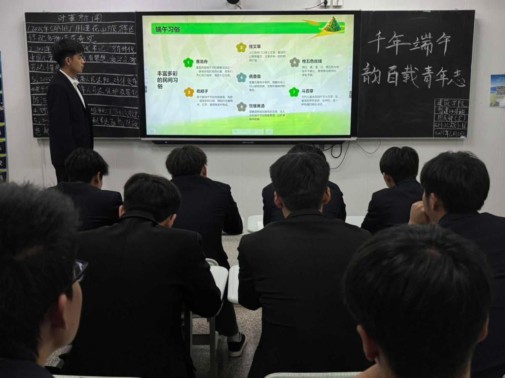 团课伊始,团支书通过深动讲述,带领同学们追溯端午节的起源。从古老星象崇拜到纪念屈原等历史人物,一个个传说故事鲜活呈现,让同学们了解到端午节承载着中华民族对正义、爱国精神的崇敬与传承。
