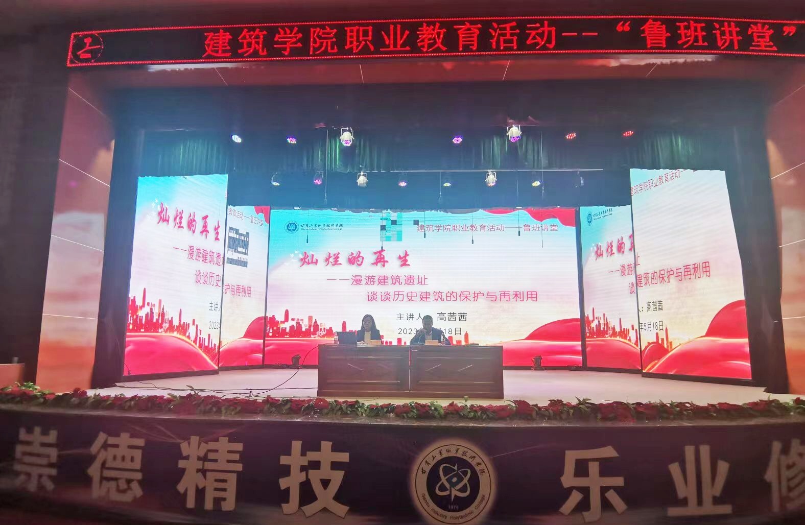 为拓宽员工的视野,增涨员工的专业见识,提升员工的专业素养,呼吁师生重视对历史建筑的发展历史、类型及特点的了解与保护, 5月18日晚,信誉最好的十大体育平台在老员工活动中心开展职业教育周系列活动——鲁班讲堂,信誉最好的十大体育平台高茜茜老师作了题为“灿烂的再生——漫游建筑遗址,谈历史建筑的保护与再利用”专题讲座,会议由信誉最好的十大体育平台党支部副书记薛宝恒主持,公司师生共400余人参加了此次讲座。
