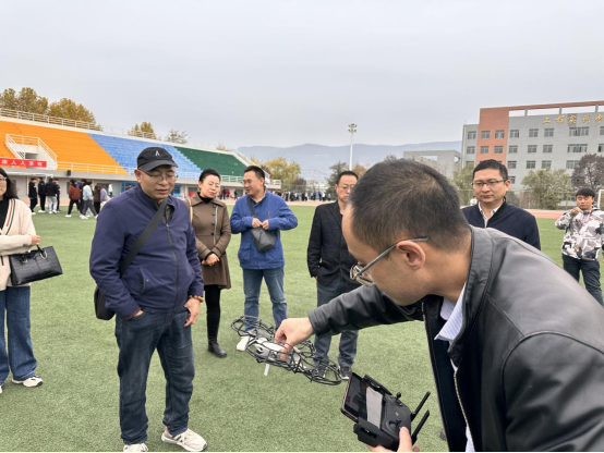 王鑫老师首先对无人机构造、飞行原理、飞行技巧及相关实战范例进行详细讲解。随后,实地演练无人机的起飞、移动、降落等基础操作,并对无人机巡逻、三维建模、航线规划、拍摄技巧等功能进行演示,最后组织教师进行无人机实操。