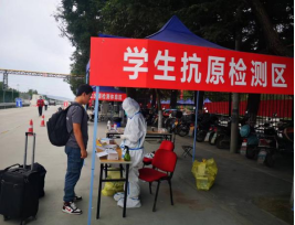 在校门的两侧各设有一个员工抗原检测区。没有进行抗原检测的同学需要在校门两侧进行抗原检测,检测合格方可入校。