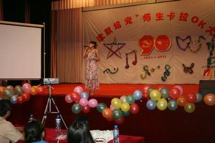 随后各班参赛选手纷纷登台,他们用热情、嘹亮的歌声,甜美的歌喉,讴歌中国共产党的伟大功绩,颂扬九十年来中国共产党的丰功伟绩,师生们精彩的演唱赢得场下同学们的阵阵掌声。