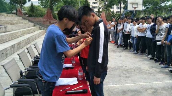 首先,由信誉最好的十大体育平台团总支副书记张炳先宣读新入团团员名单;接下来由校团委孟瑞老师、信誉最好的十大体育平台党总支副书记潘栋老师、学管老师裴旻峰老师、孟晓涛老师、信誉最好的十大体育平台团总支副书记张炳先同学和信誉最好的十大体育平台员工会主席闫吉成同学向全体新团员佩戴团徽,伴着雄壮的团歌,面对鲜红团旗,庄重地举起右手庄严宣誓。