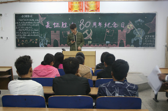 活动期间,各班团支书向同学们讲述了长征的历史以及在当今社会如何弘扬长征精神。随后各班以演讲、提问等方式回顾了长征的艰难历程。