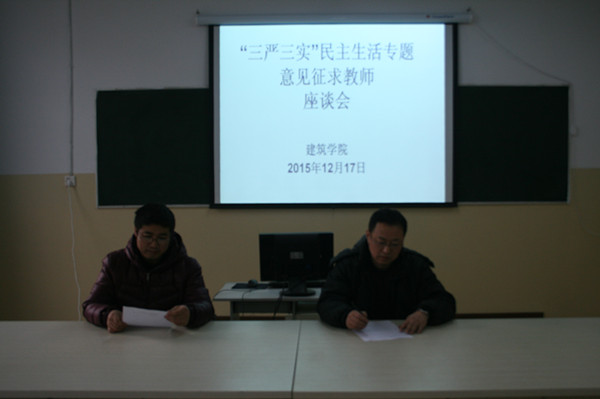 2015年12月17日下午4:30——6:00,公司在建筑质量检测实训室召开了“三严三实”专题民生活会教师座谈会,征求公司领导班子和领导班子成员在修身做人、用权律己、干事创业等方面的意见和建议。座谈会由闫积刚副经理主持,公司副经理蔺吉秋同志、党总支副书记潘栋同志及教师共13名同志参加了座谈会。