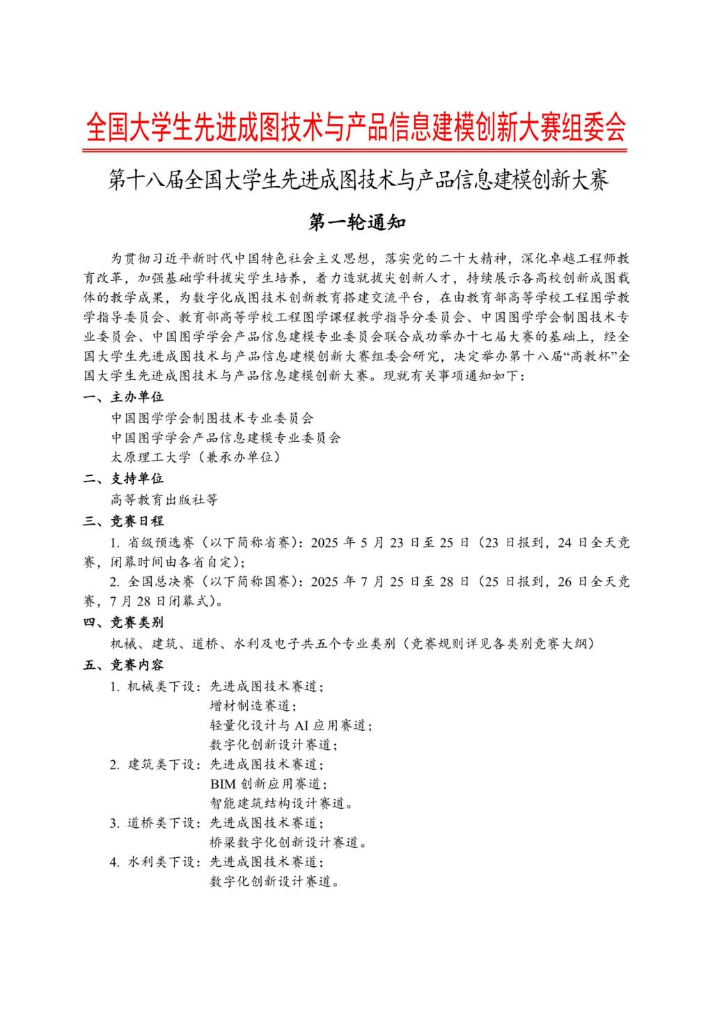 第十八届全国老员工先进成图技术与产品信息建模创新大赛 第一轮通知