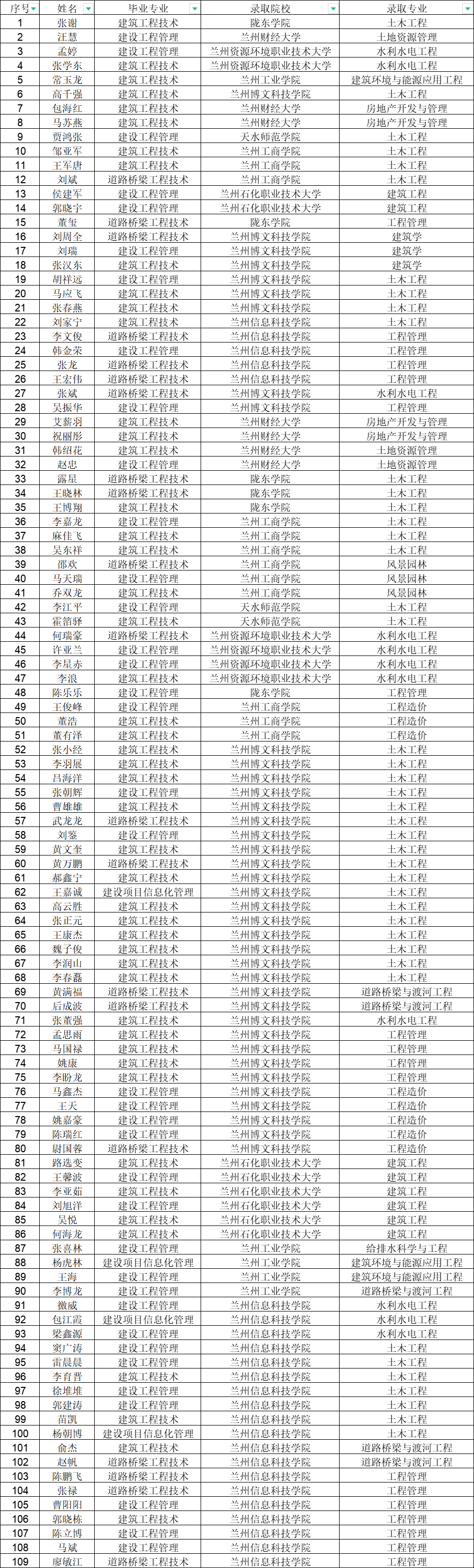 信誉最好的十大体育平台共122人参加统一招生考试,其中109人被兰州工业公司、天水师范公司、兰州财经大学、陇东公司、等9所公司录取,录取率为90.1%。