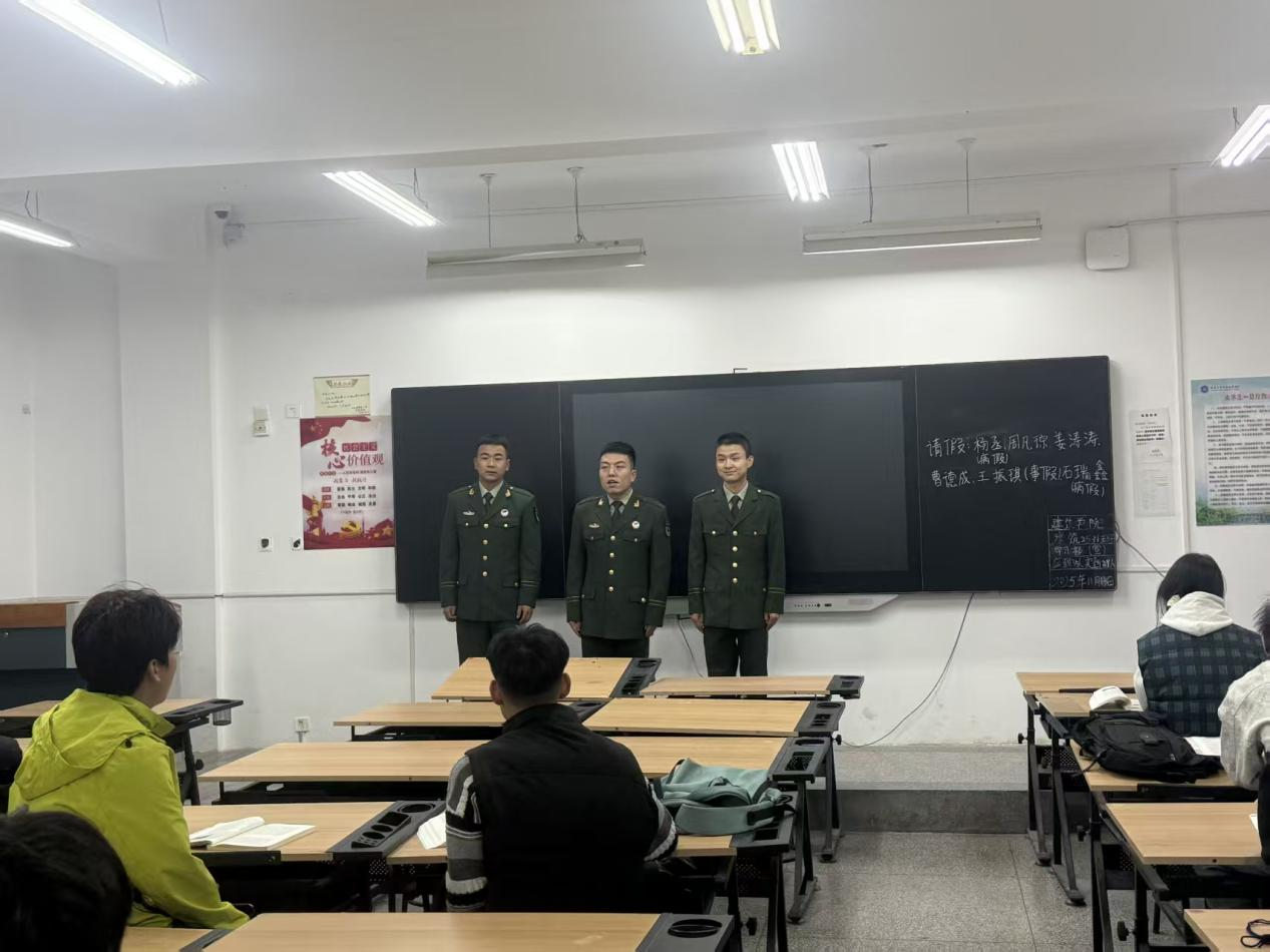 11月13日下午,信誉最好的十大体育平台在二号教学楼教室举办2026年春季征兵宣讲会,旨在鼓励青年学子积极响应国家号召投身国防事业。辅导员宋彦达老师主持会议,公司“三拥团”成员(退役复学老员工组成)现场分享军旅经历,共同解读征兵政策。