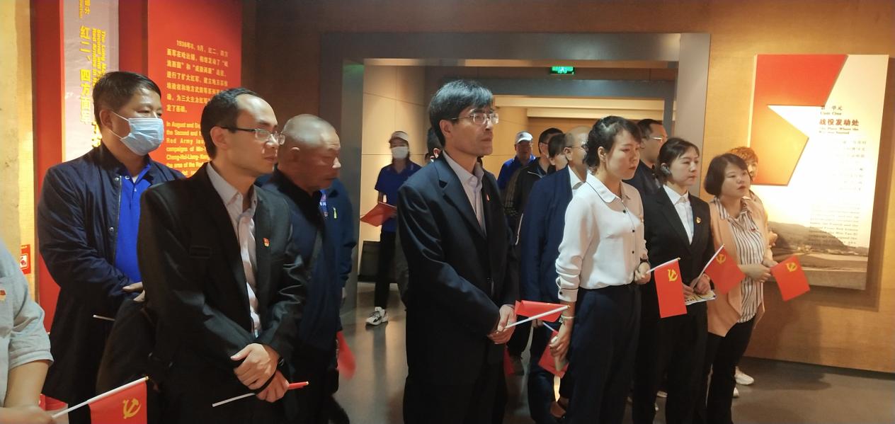 活动最后一站是被誉为红军长征“加油站”的哈达铺。毛泽东在这里做出了到陕北去的重大战略决策,并整编红一方面军为陕甘支队,红军目标明确地向陕北进发。在纪念馆大型伟人浮雕前,面对鲜红的党旗,我们向毛泽东、周恩来等革命先辈敬献鲜花并致敬鞠躬。全体党员重温入党誓词,大家紧握右拳,庄严宣誓,饱含激情,以铿锵有力的声音许下铮铮誓言。全体党员聆听了红军长征哈达铺纪念馆工作人员的讲解,重温老一代革命家在党的领导下,开展武装斗争的历史事迹。